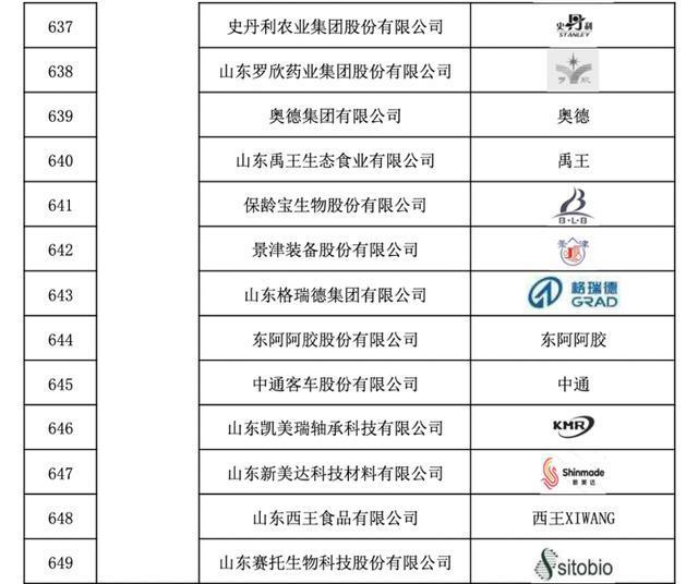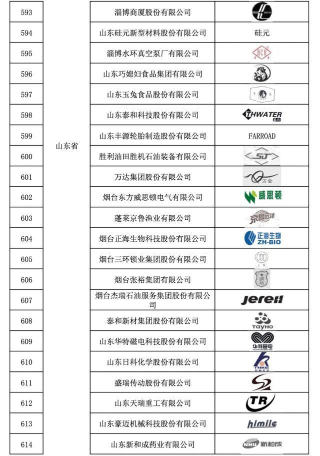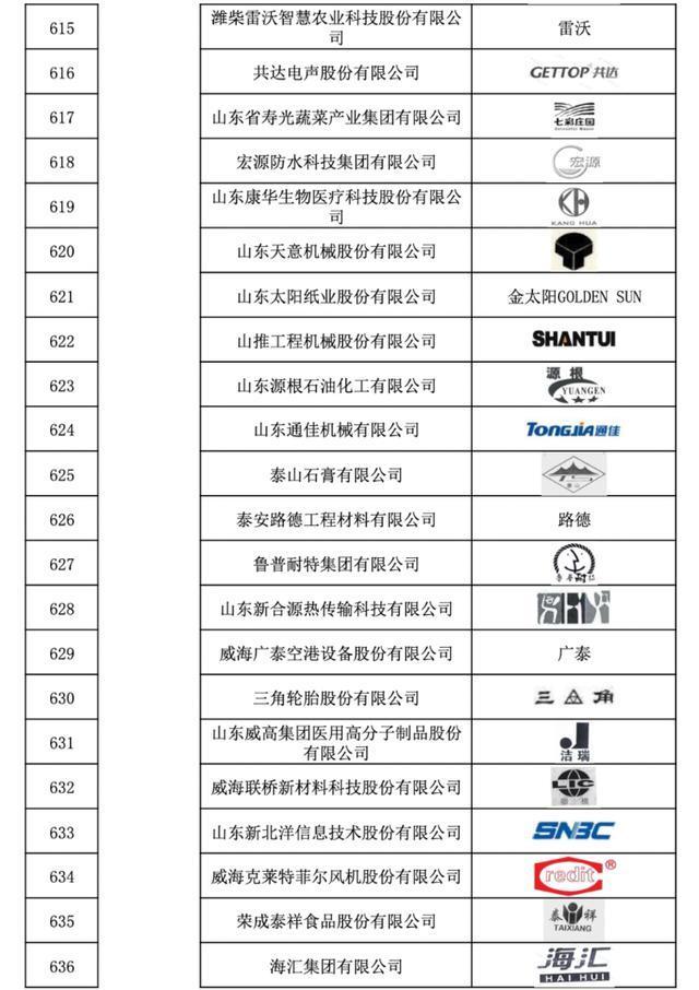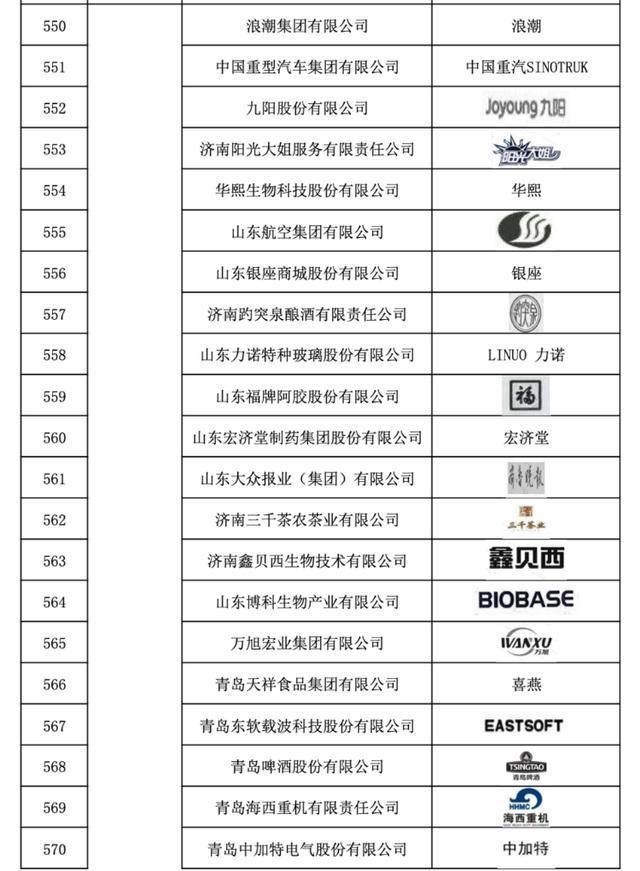 山东省首批参加“千企百城”商标品牌价值提升行动的企业商标品牌名单