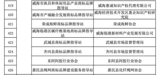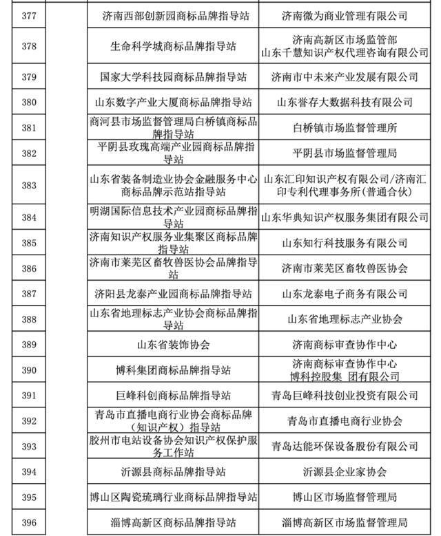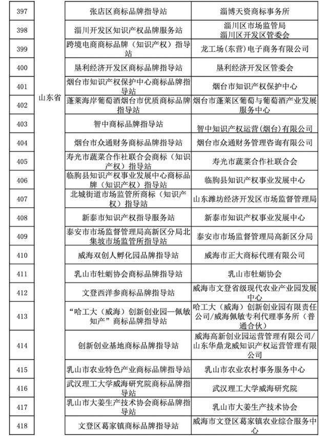 山东省首批参加“千企百城”商标品牌价值提升行动的商标品牌指导站名单